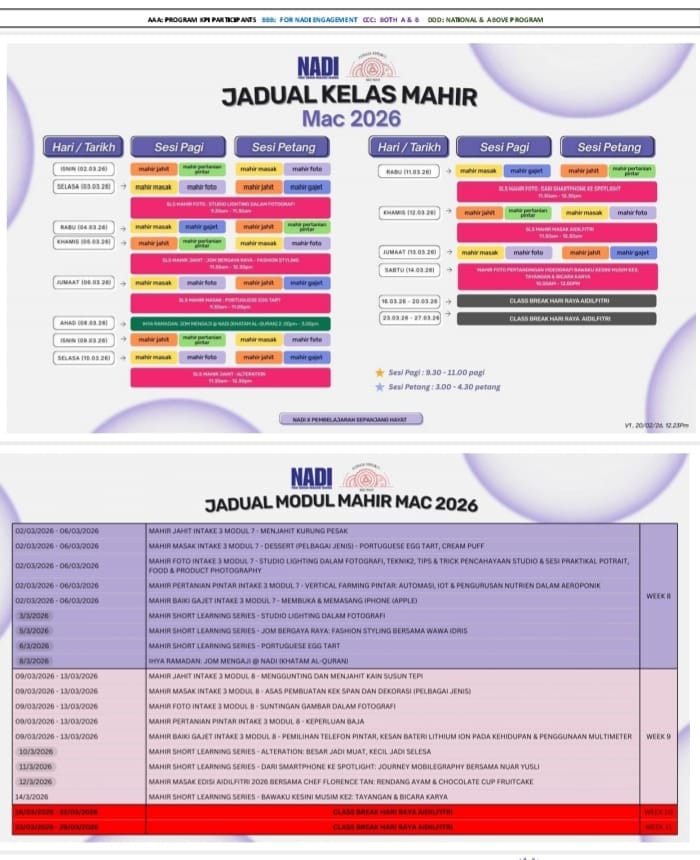 JADUAL KELAS MAHIR MARCH 2026