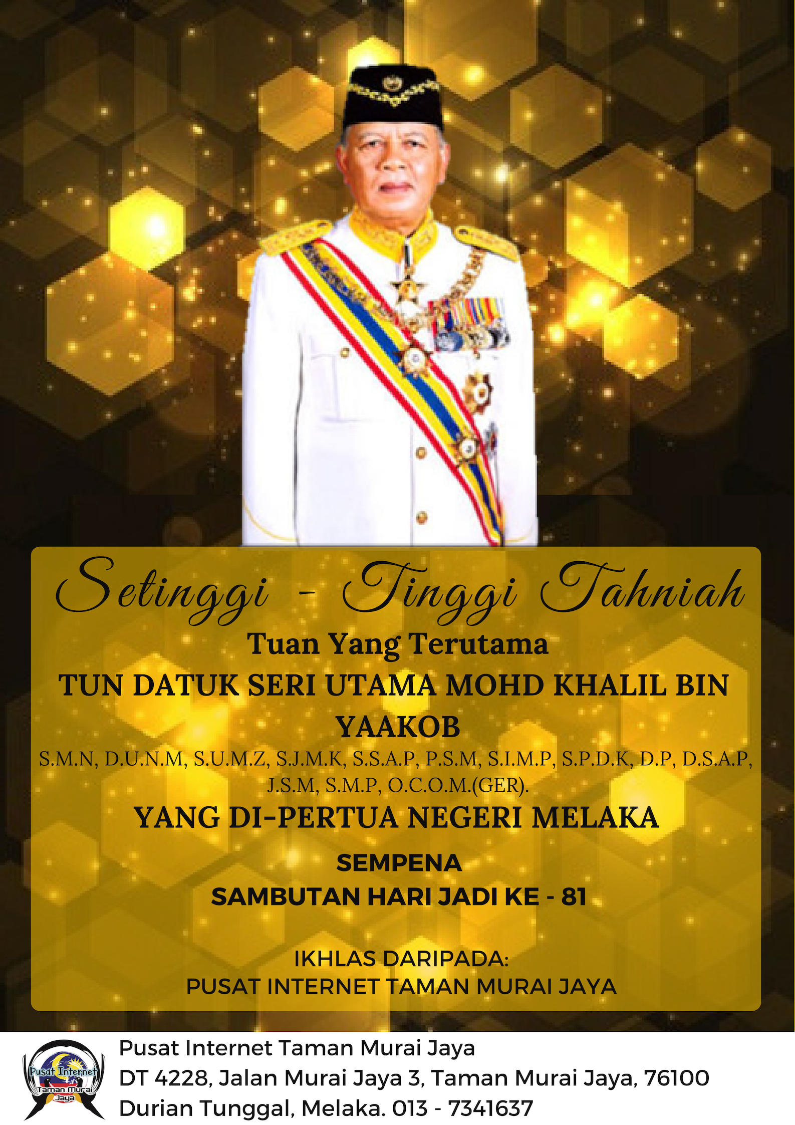 Makluman : Pusat Internet Taman Murai Jaya ditutup pada 11 OKTOBER 2019 (JUMAAT) sempena cuti umum HARI JADI YANG DIPERTUAN NEGERI MELAKA. Selamat Bercuti!